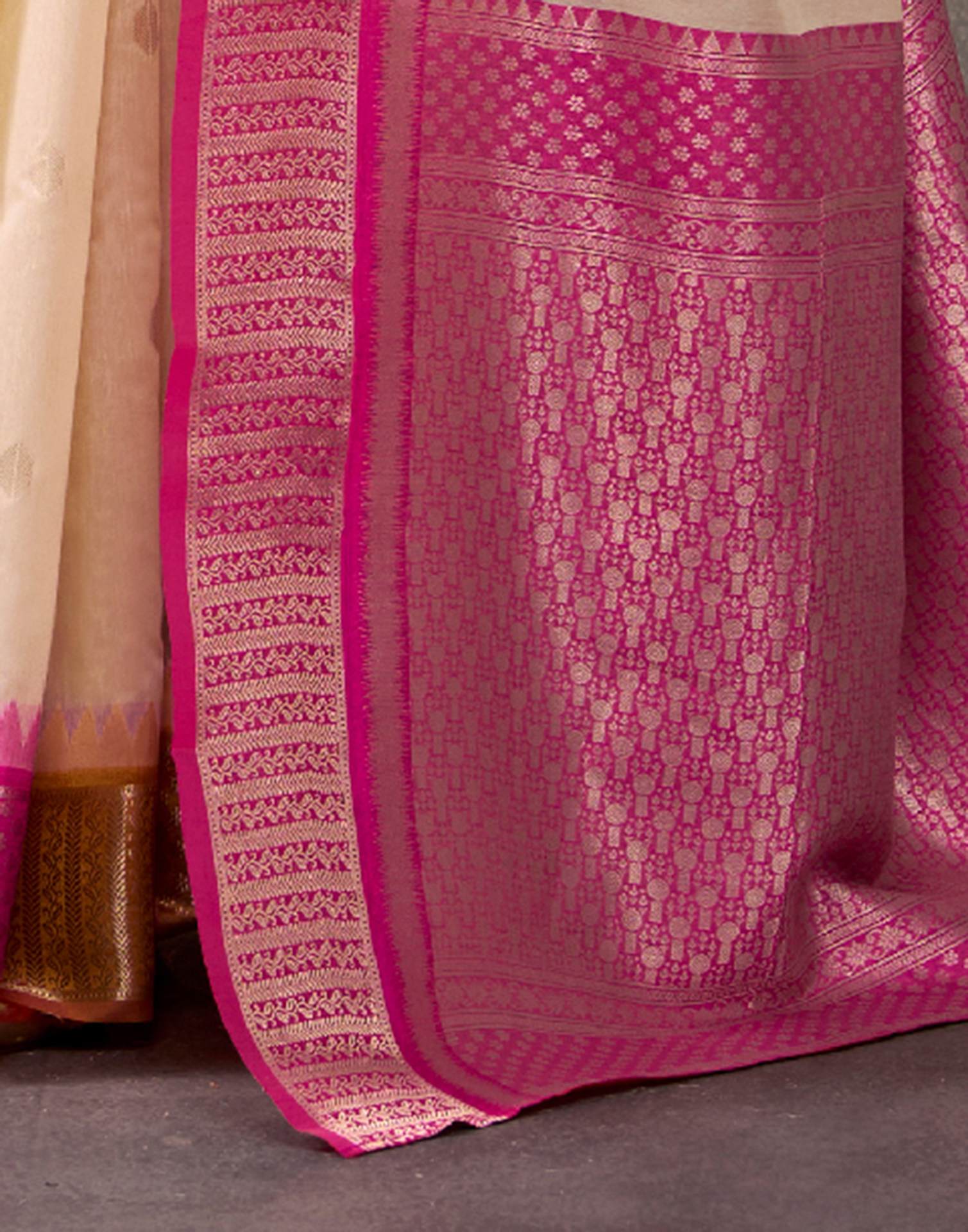 Beige Cotton Woven Banarasi Saree