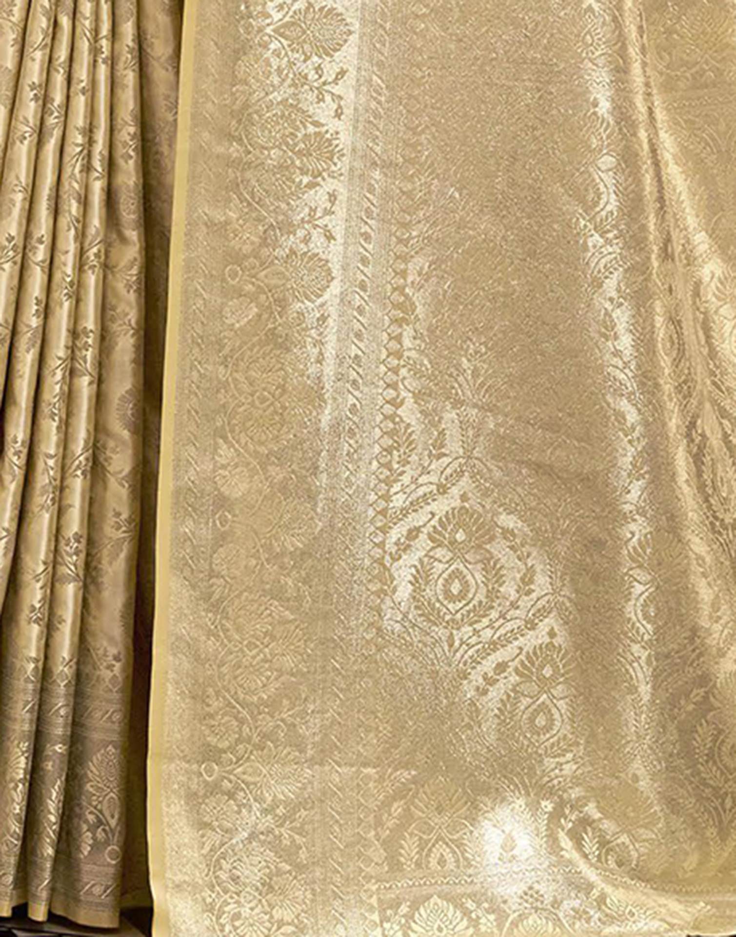 Beige Satin Woven Banarasi Saree