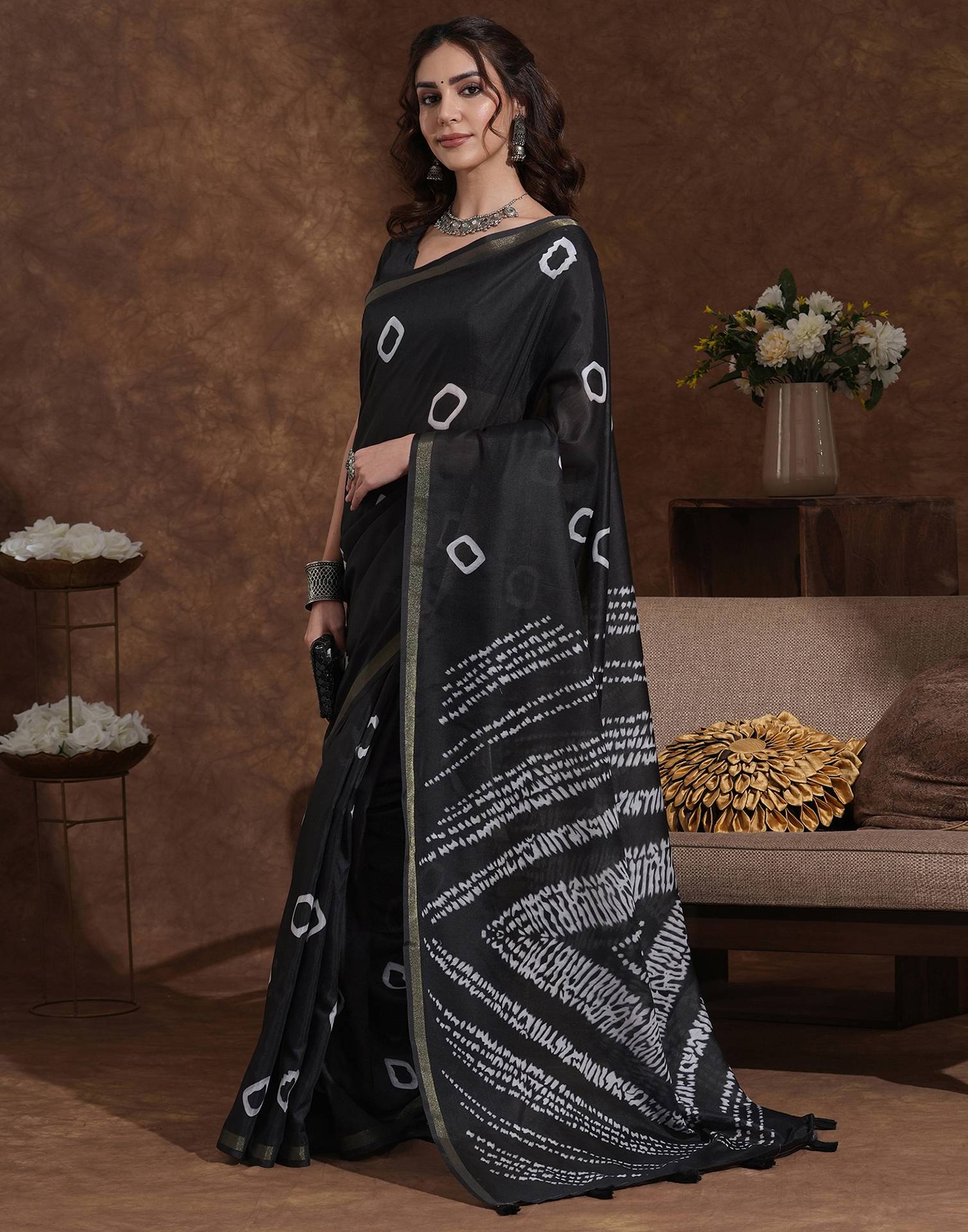 Black Silk Printed Saree