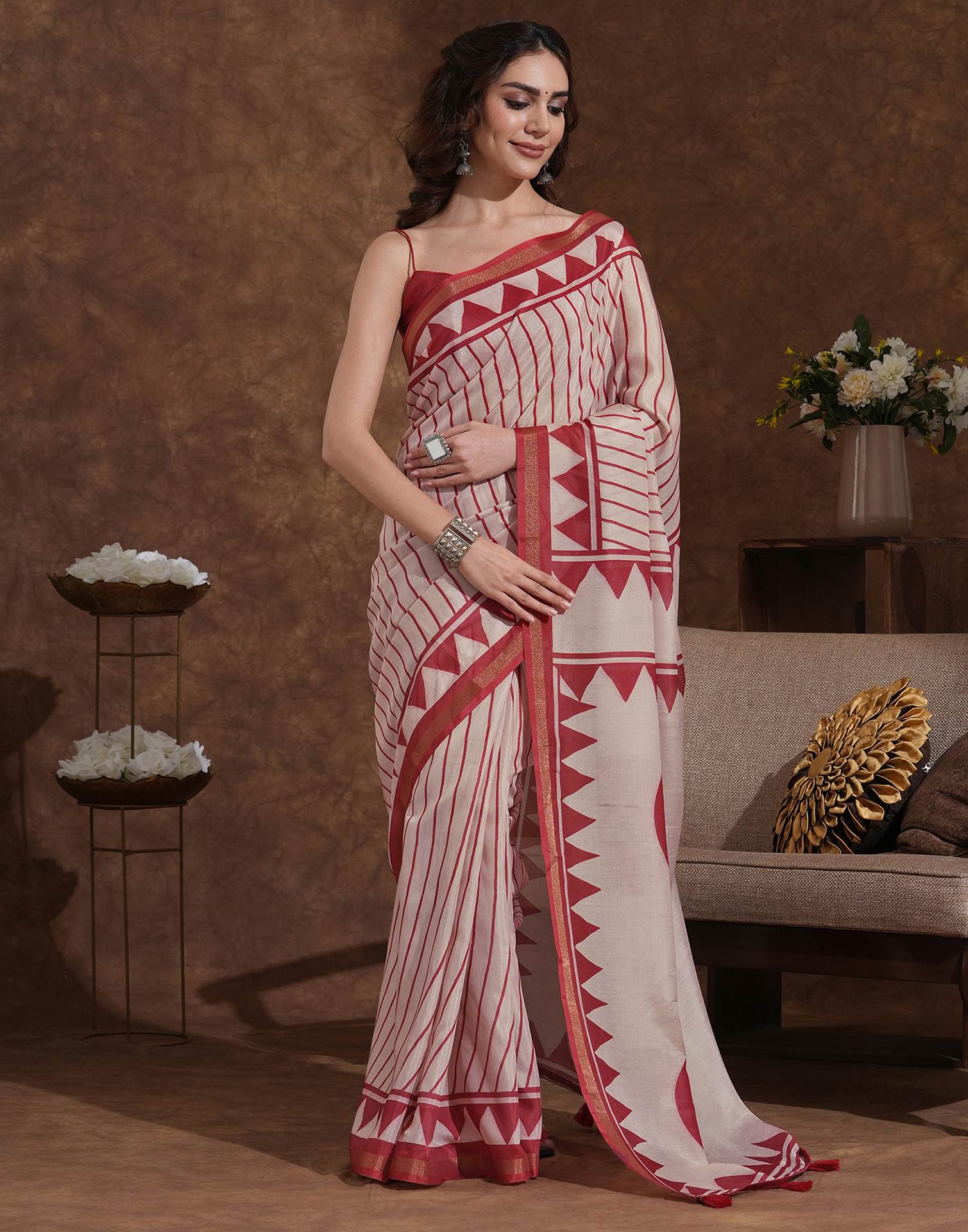 Dusty Peach Silk Printed Saree