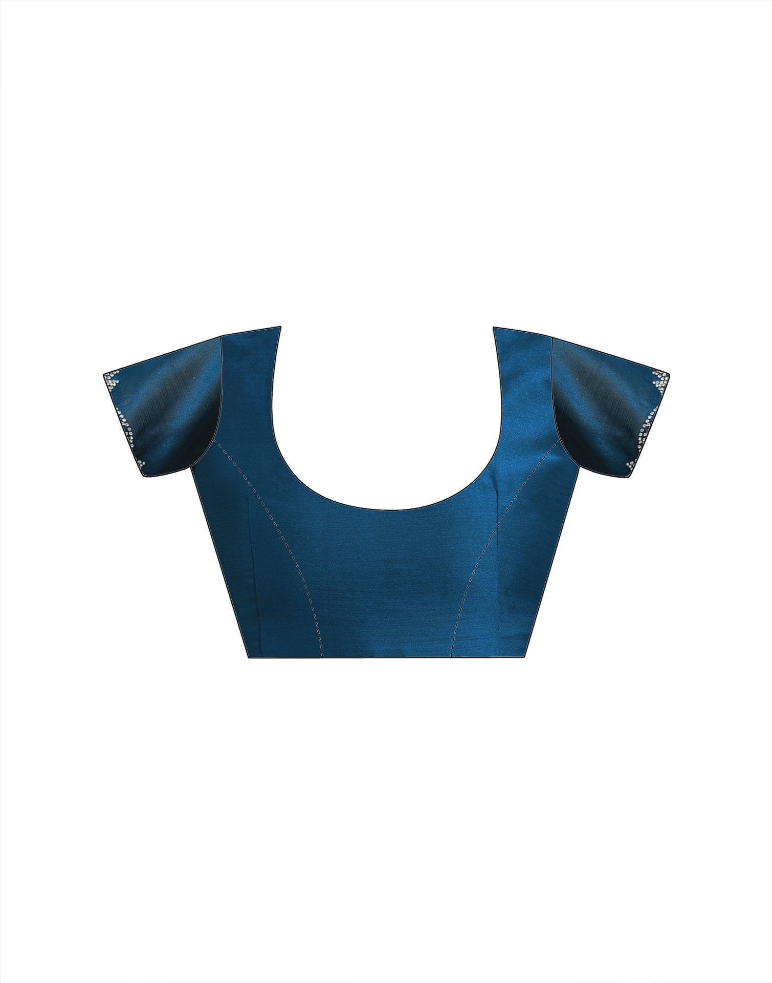 Rama Blue Chiffon Stone Work Swarovski Saree